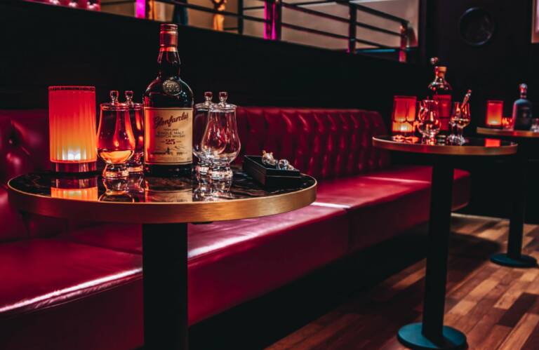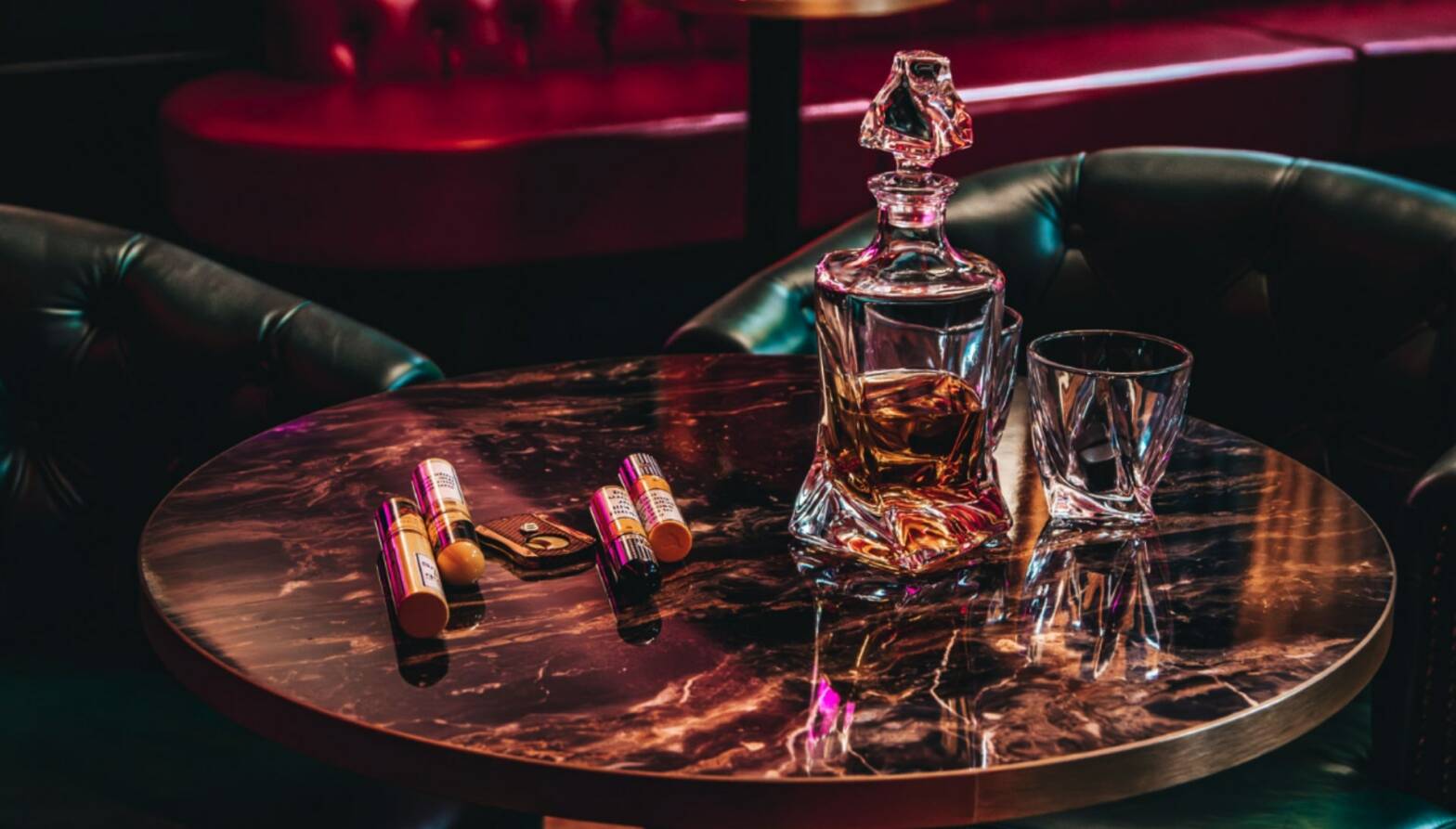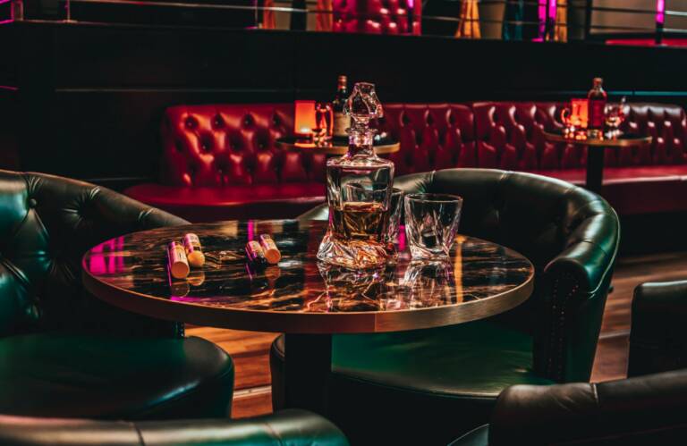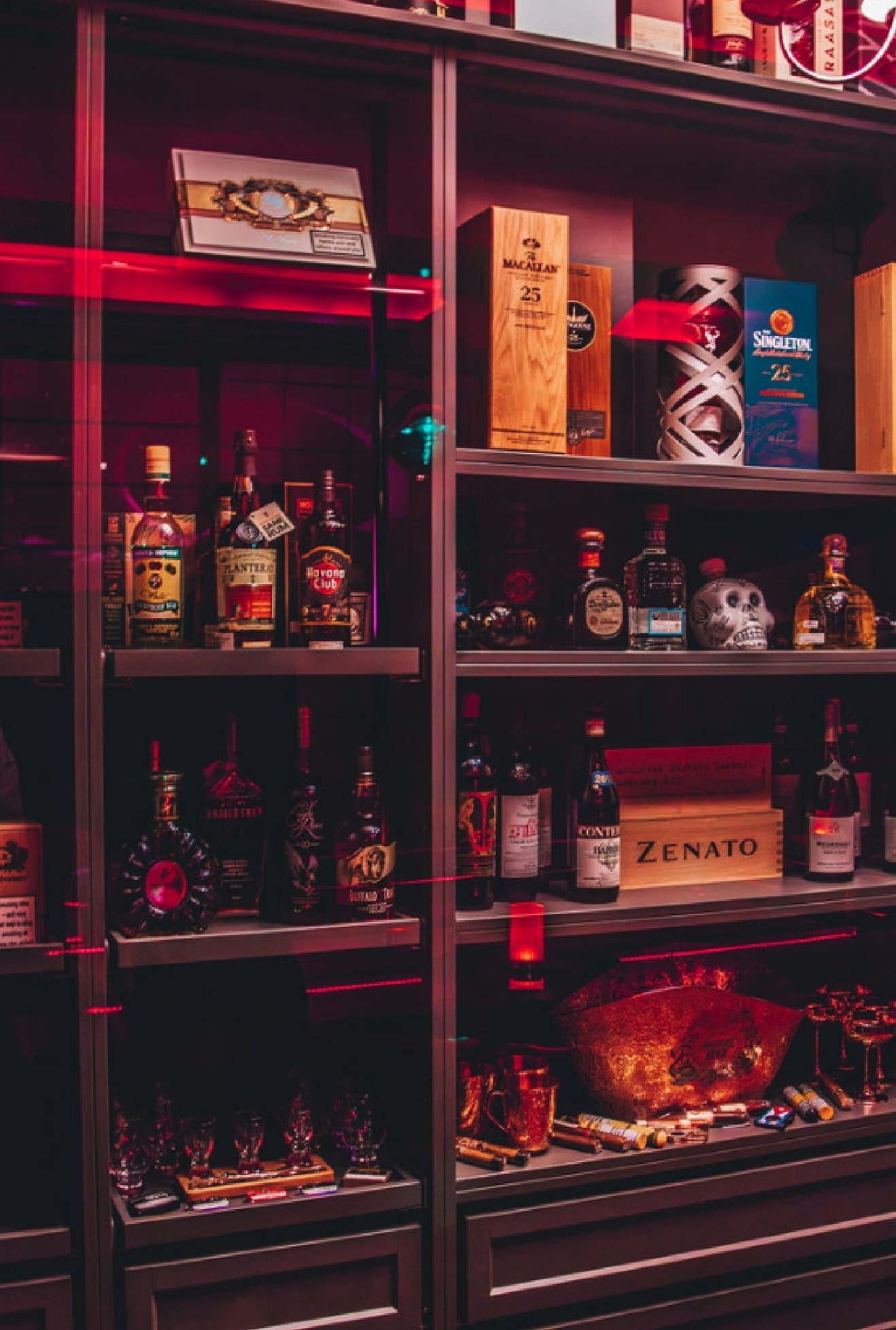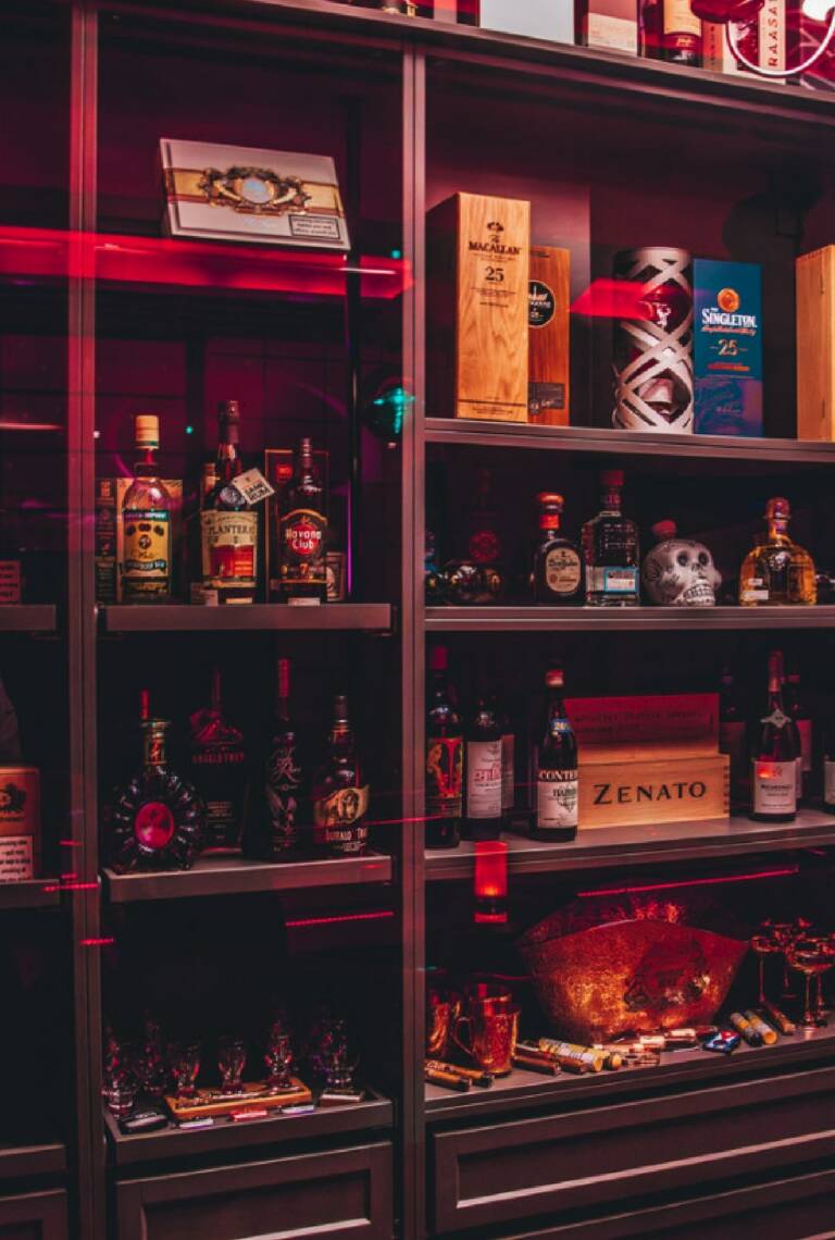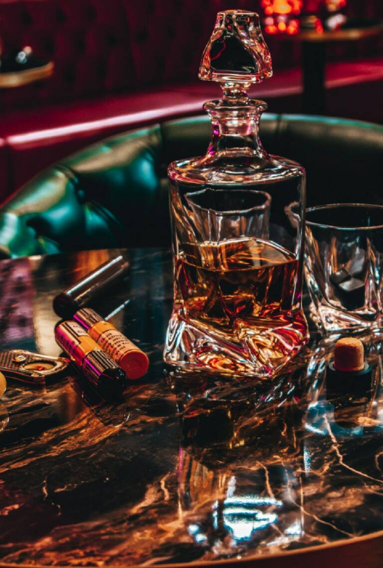 The entrance to No 39 is either through Diamond Dolls main doors or to add a touch of mystic for you and your guests ,the slightly covert rear entrance,through the smoking courtyard,once inside ,you are greeted by a haven ,inspired by the classic American gentleman’s clubs featuring all sleek leather lounge seating , extensive mood lighting and a soundtrack [ at just the right volume ] from a bygone era and boasting the city’s only cigar { walk in} humidor room